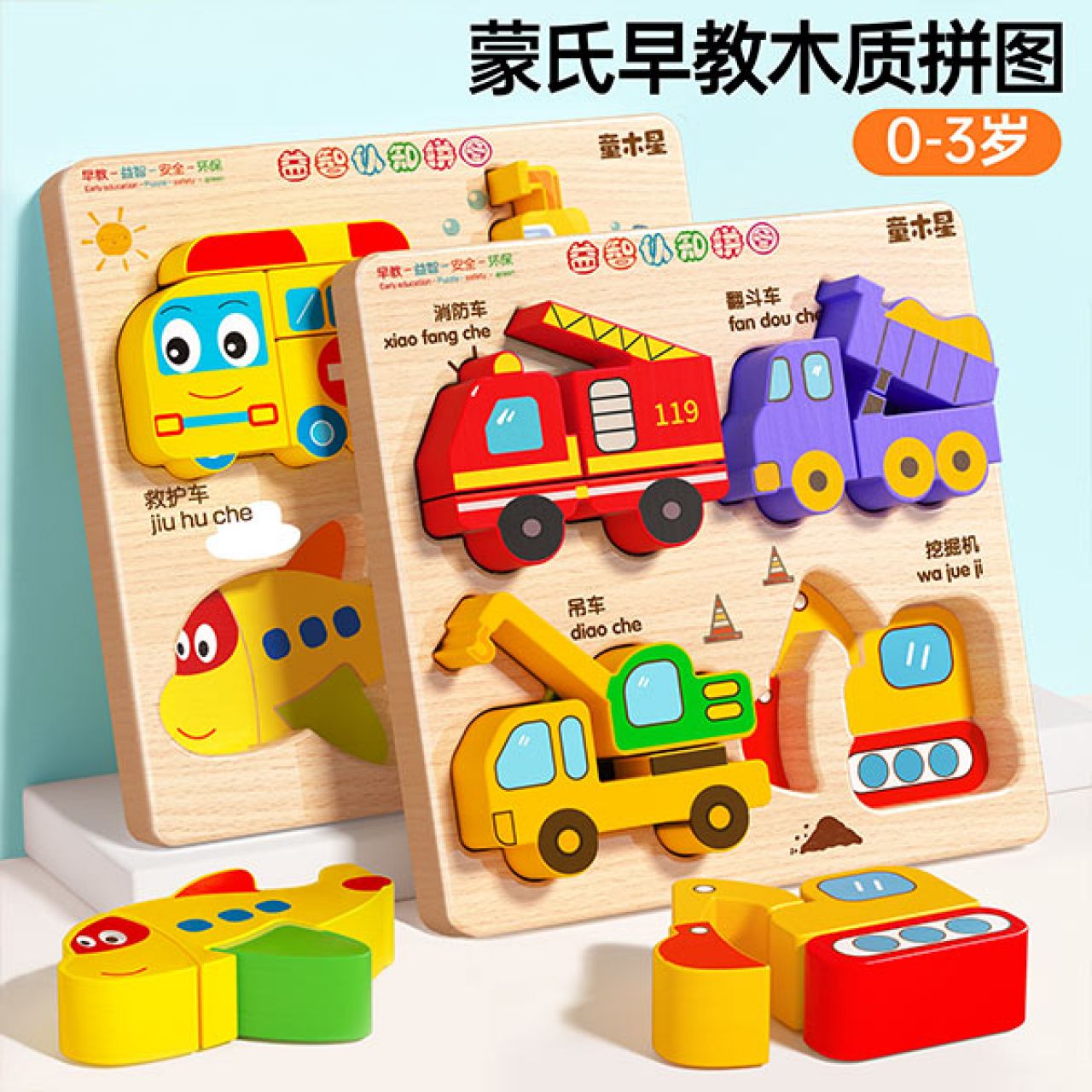 儿童益智拼图立体木质0到3岁宝宝智力早教男孩女拼装积木玩具礼物