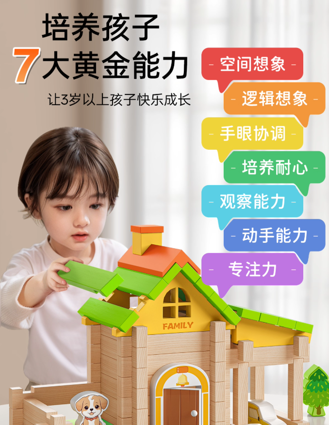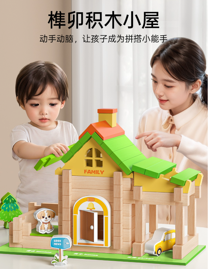 鲁班榫卯积木男孩女孩益智儿童木质diy拼搭建筑小屋结构手工玩具